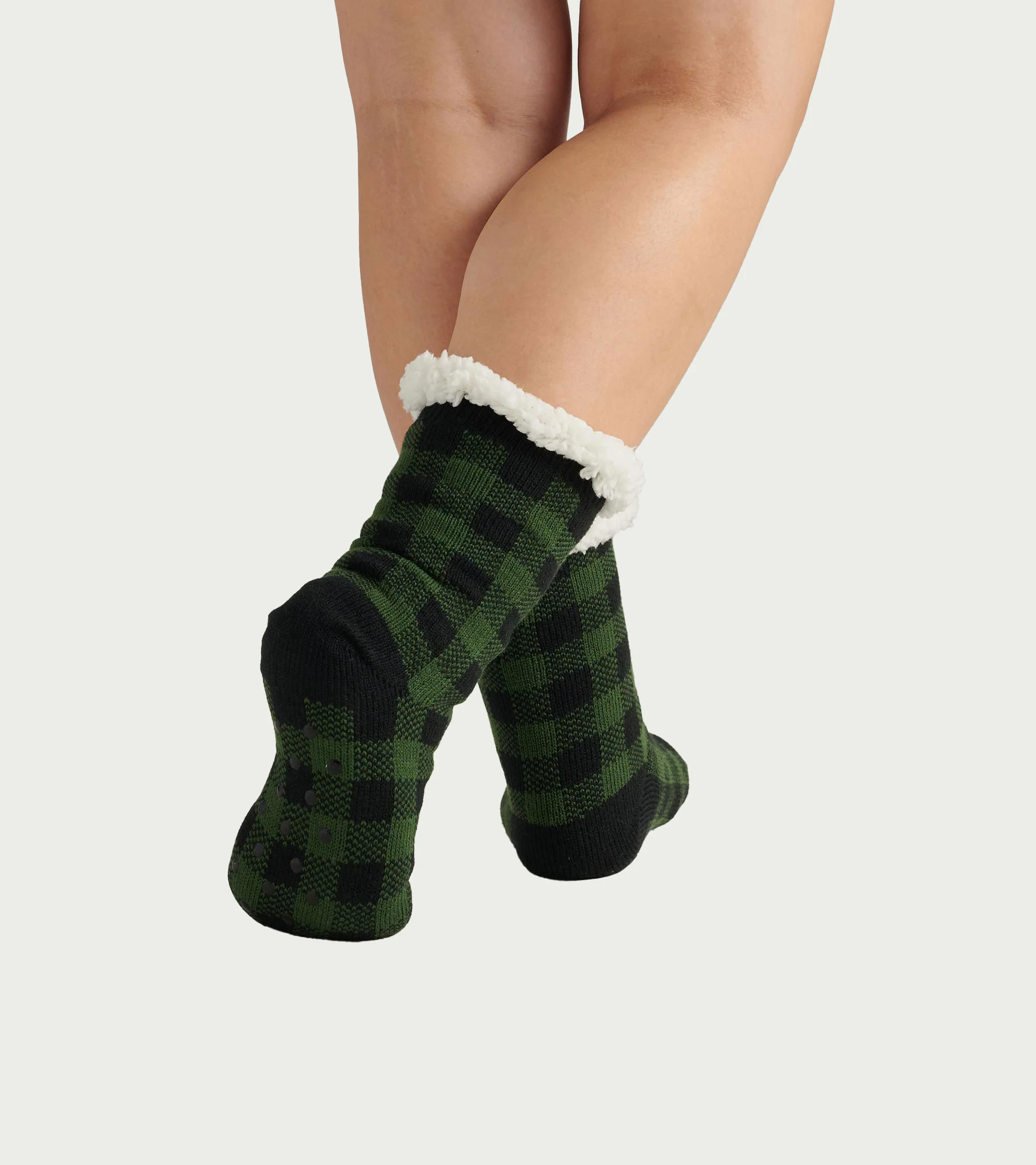 Forest Green Plaid Women's Sherpa Lined Cabin Sock